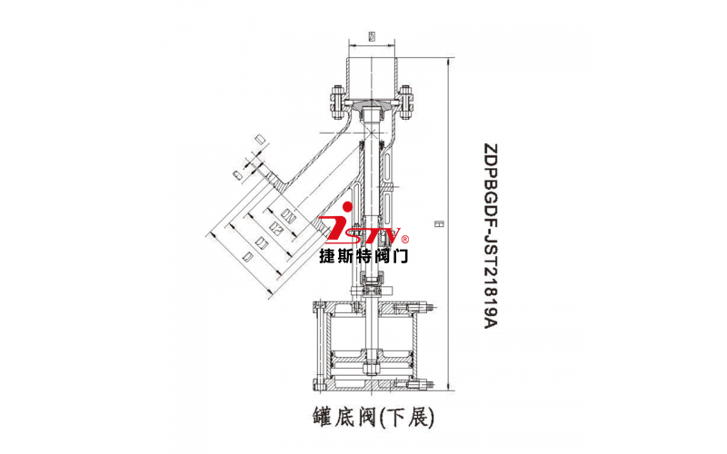 一、設計機理:我們將罐底閥的傳動軸與閥芯設計為雙作用功能,在軸桿上增設一道拔叉,在閥芯頂部增設破冰旋轉刀頭。